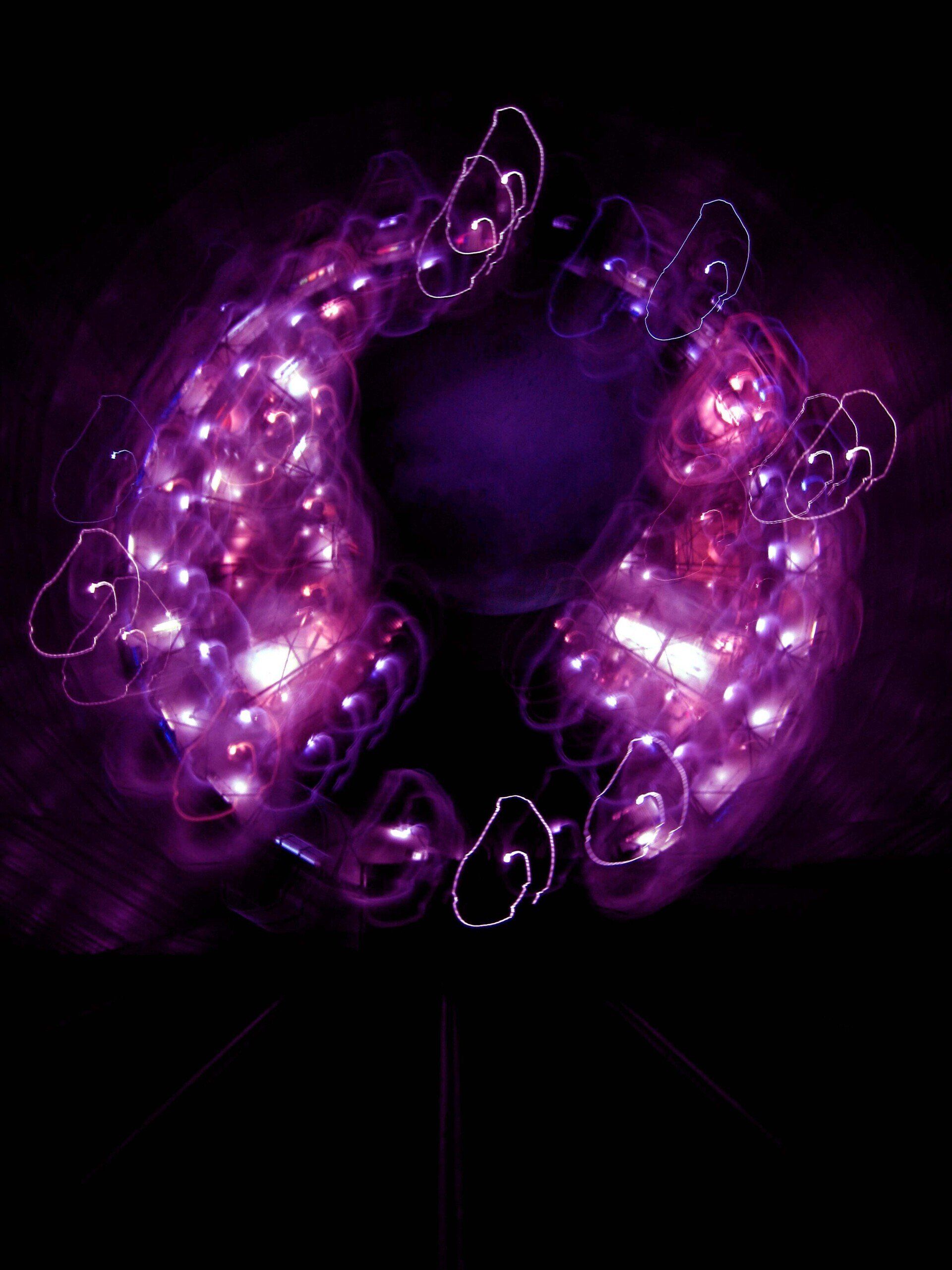 experimentiere ich mit Lichtzeichen einer visionären Genesis.